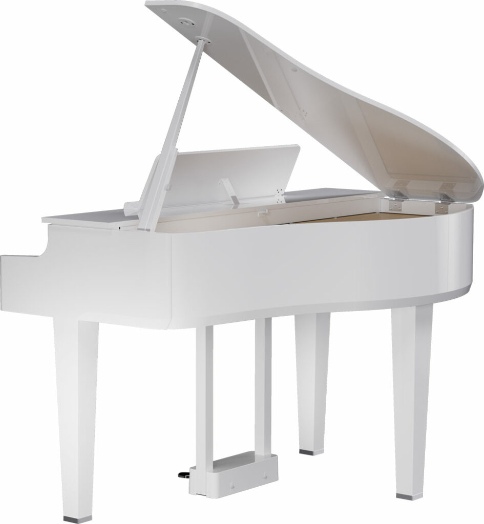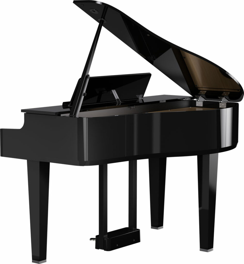 Der Roland GP‑3 vereint die Eleganz eines Konzertflügels mit der Flexibilität eines Digitalinstruments. Mit nur 698 mm Tiefe passt er auch in kleinere Wohnräume. Das schwarze Hochglanz‑Finish, klare Linien und feine Details fügen sich harmonisch in moderne Einrichtungen ein und setzen ein stilvolles Statement.