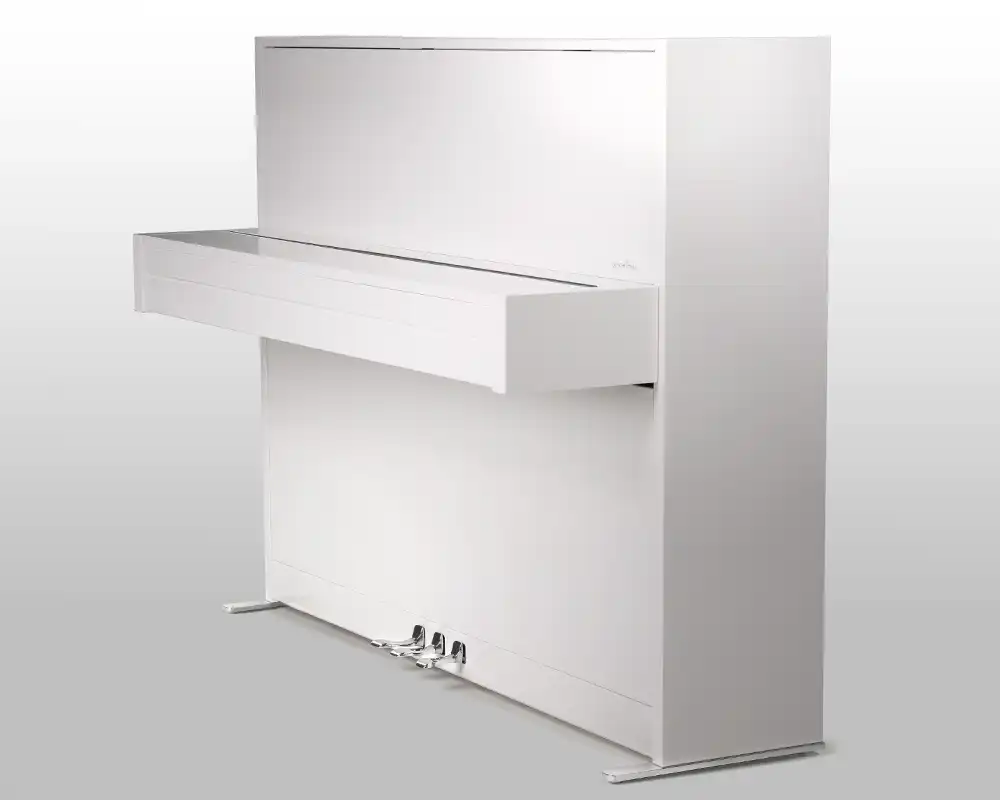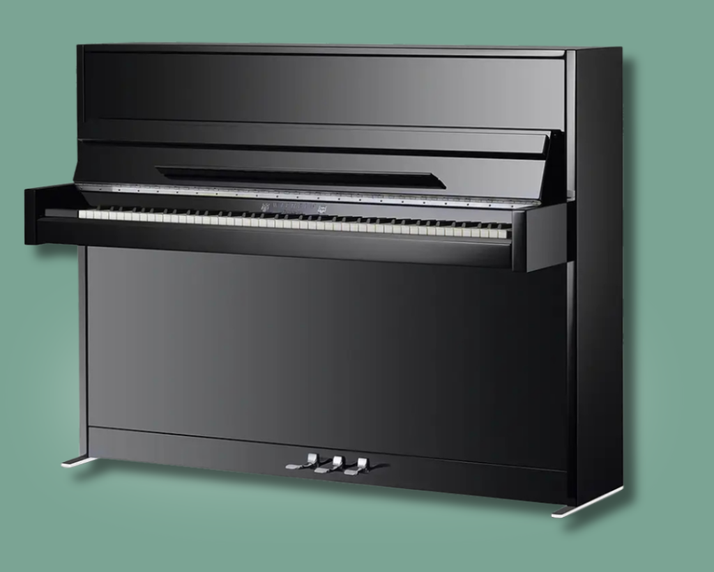 Doch dieses Klavier ruht sich nicht auf der Vergangenheit aus. Vielmehr betont es durch seine moderne Optik den aktuellen Zeitgeist. Standardmäßig liefern wir das Instrument mit edlen, chrom-matten Beschlägen aus. Somit fügt es sich harmonisch und elegant in jede moderne Wohnumgebung ein. Es ist ein Beweis dafür, dass Gutes überdauert, wenn man es pflegt und weiterentwickelt.